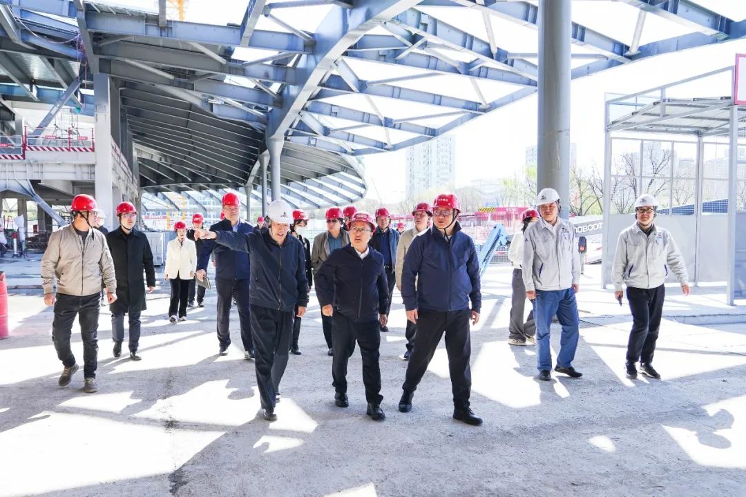 2023年4月14日,市住建委重點(diǎn)工程協(xié)調(diào)處副處長(zhǎng)田利民、秦斌攜區(qū)住建委副主任胥正春一行與區(qū)規(guī)自分局、區(qū)北部辦共同蒞臨中關(guān)村論壇永久會(huì)址主會(huì)場(chǎng)項(xiàng)目現(xiàn)場(chǎng)檢查指導(dǎo)。海國(guó)投集團(tuán)副總經(jīng)理李國(guó)偉、大街公司及各施工單位陪同此次活動(dòng)并出席會(huì)議。