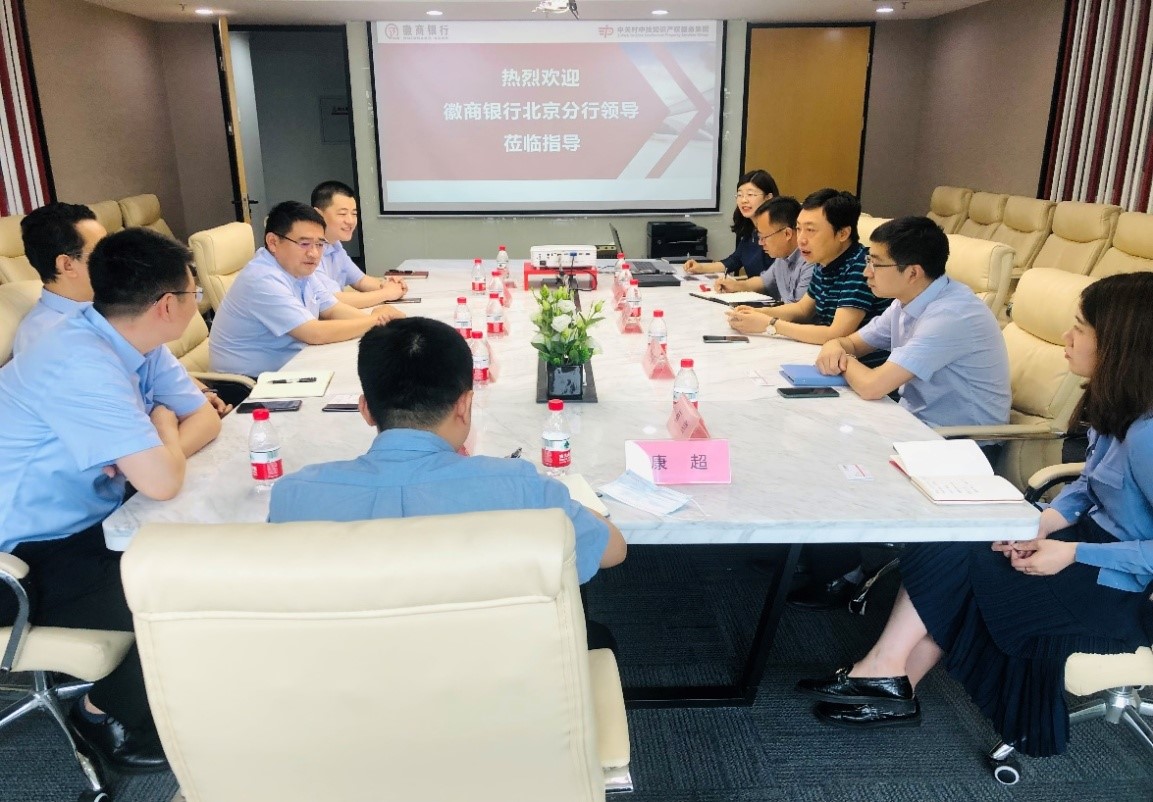 日前,徽商銀行北京分行黨委書記、行長孫新聯(lián),徽商銀行北京分行黨委副書記、副行長張大亮一行5人到訪中技集團(tuán)進(jìn)行交流,中技集團(tuán)董事長董鵬、中技擔(dān)保總經(jīng)理韓宇等參與了會(huì)談。