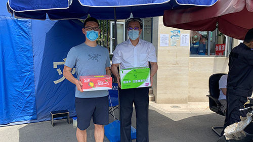 由于發(fā)生新發(fā)地批發(fā)市場(chǎng)聚集性疫情,北京市應(yīng)急相應(yīng)級(jí)別提升至二級(jí),防控形勢(shì)十分嚴(yán)峻。面對(duì)疫情防控工作出現(xiàn)的新變化,海國(guó)投全體下沉黨員職工迅速行動(dòng)起來(lái),重啟下沉值守工作,繼續(xù)擔(dān)起社區(qū)防疫的重任。6月18日下午,公司黨委副書(shū)記、工會(huì)主席張澤根代表公司黨委,看望慰問(wèn)值守在一線(xiàn)的黨員職工,為大家?guī)チ孙嬘盟?、口罩等防疫物資。